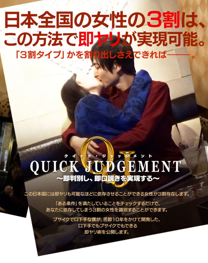 今回ご紹介する恋愛ノウハウ「Quick Judgment」は、再現性が非常に高い日本屈指のシンプルなテクニックです。
