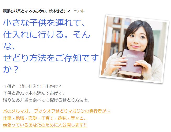 「絵本せどりマニュアル」とは、絵本や児童書を実店舗、またはネットショップなどから仕入れて、アマゾンマーケットプレイスで販売する方法を解説した教材です。