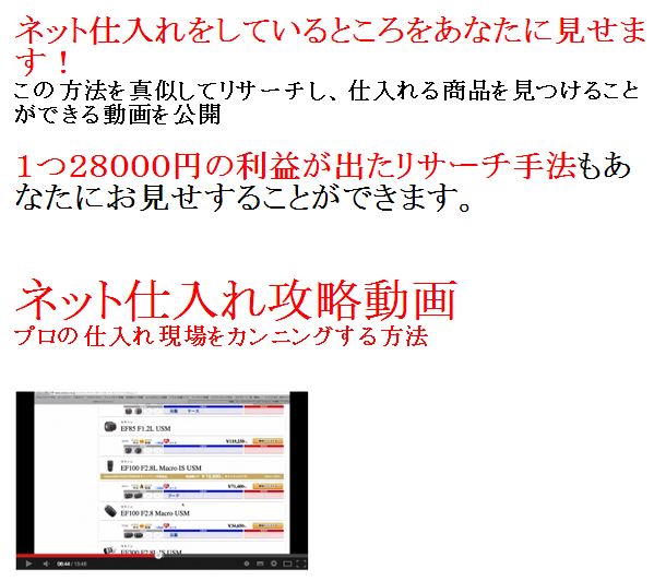 当サイト経由で「ネット仕入れ攻略動画 プロの仕入れ現場をカンニングする方法」をご購入頂くと、