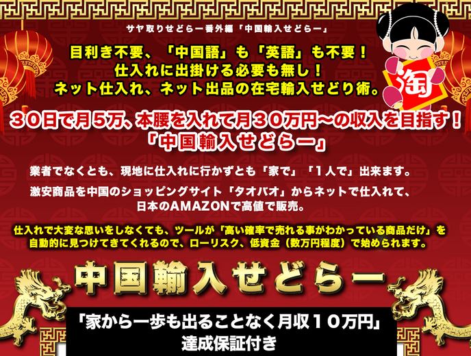 「中国輸入せどらー!タオバオから仕入れてAmazonで高値で稼げる商品を自動リサーチ!」