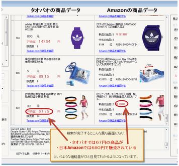 このツールを利用すると、タオバオ/アマゾン間で価格差のある商品を簡単に探し出してくれるので、仕入れの際にとても役立ちます。