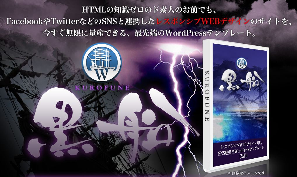 当サイト経由で「レスポンシブデザイン対応、SNS連動型WordPressテンプレート【黒船】」をご購入頂くと、