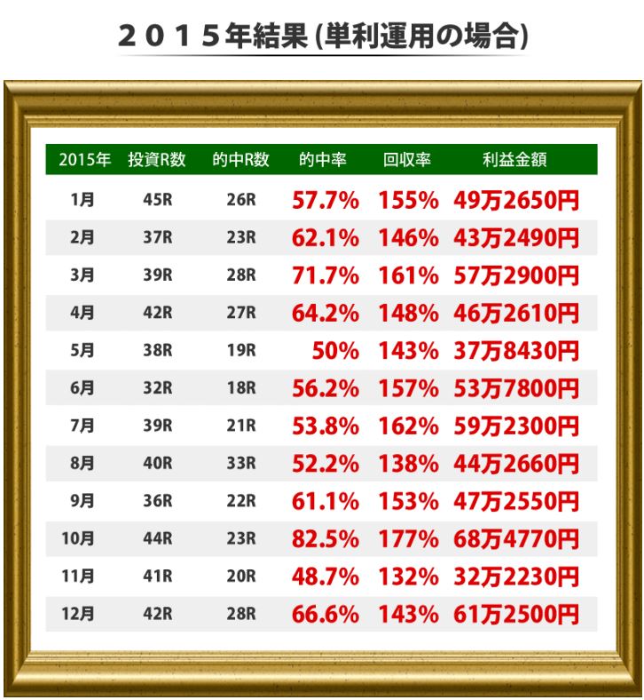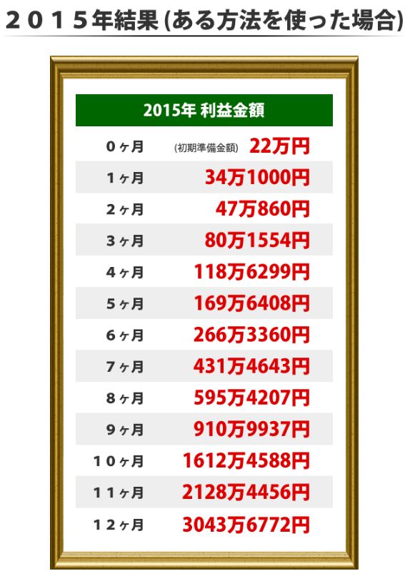 「ゴールデンホースビクトリーメソッド」でお伝えしている投資法を習得すれば、下記の様な結果を期待することができます。