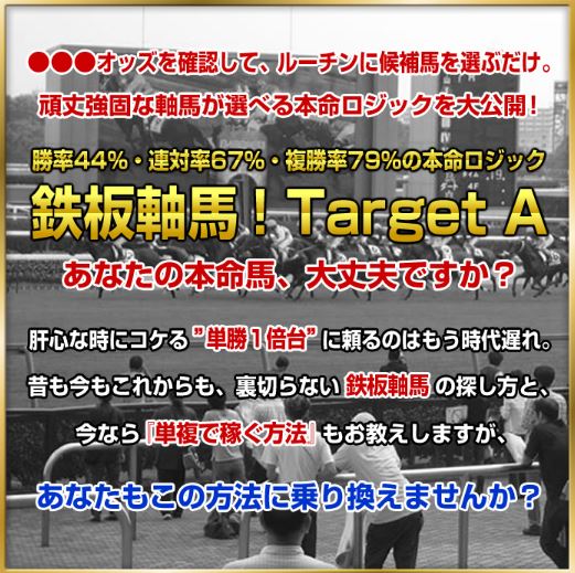 「勝率44%・連対率67%・複勝率79%の本命ロジック『鉄板軸馬!TargetA』」