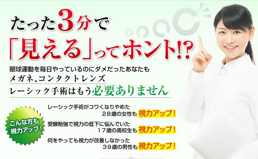 当サイト経由で「視力回復3ミニッツ 自宅でできる視力回復法」をご購入頂くと、