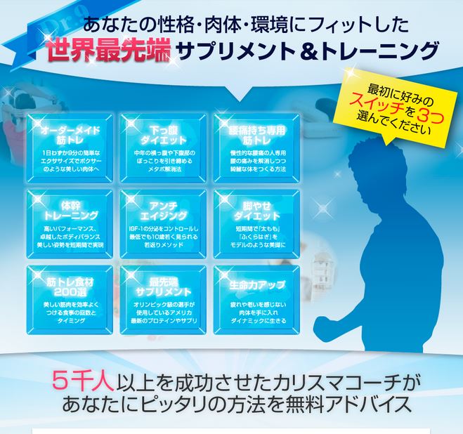完全オーダーメイドのプログラムなので、余計なことは考えなくても処方せんに従うだけで結果を出すことが出来ます。
