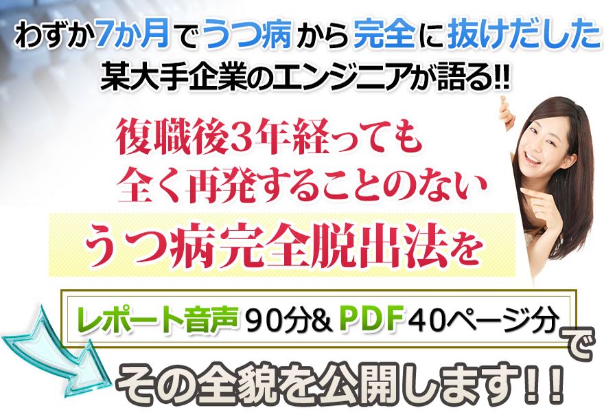 当サイト経由で「うつ病完全脱出法マニュアル」をご購入頂くと、