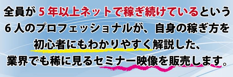 セミナー映像に登場する6人は、全員が5年以上ネットビジネスのみで稼ぎ続けているプロの講師です。