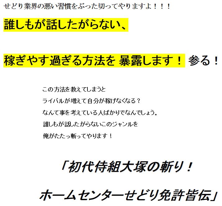 「初代侍大塚の斬!ホームセンターせどり免許皆伝」