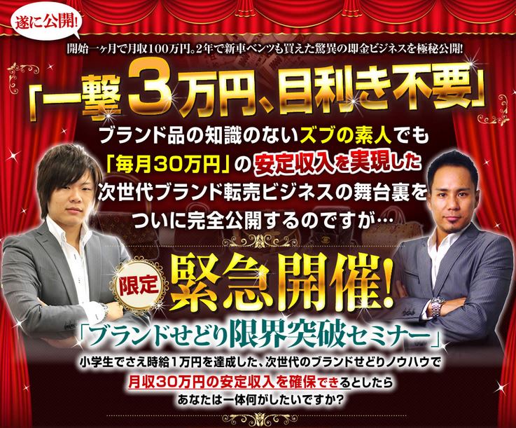 毎月30万円の安定収入を確保するための「ブランドせどり限界突破セミナー」