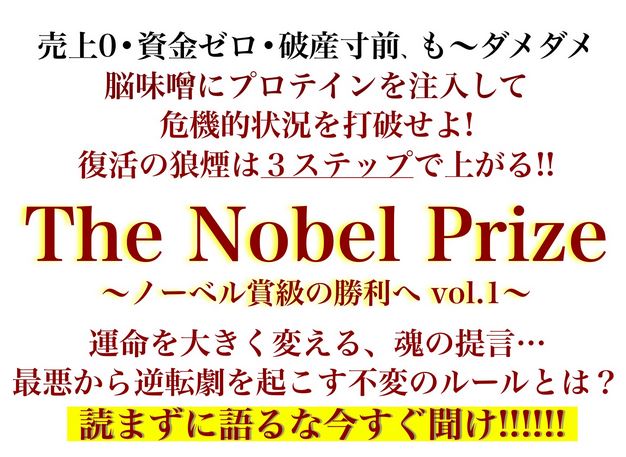 当サイト経由で「The Nobel Prize vol.1〜危機的状況から脱出するための3ステップ〜」をご購入頂くと、