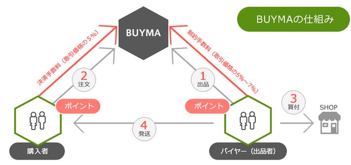 出品者が売りたい海外ブランド品などをBUYMAへ出品して、購入者が商品を購入した段階で出品者がショップで買い付けを行い発送するというシステムになります。