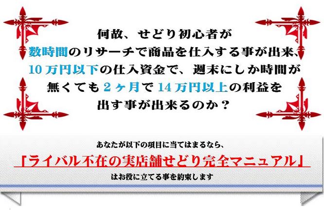 当サイト経由で「ライバル不在の実店舗せどり完全マニュアル」をご購入頂くと、