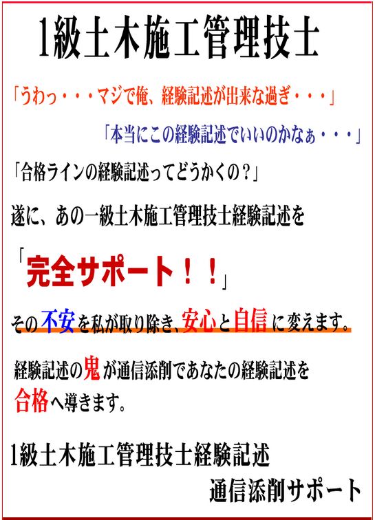 当サイト経由で「1級土木施工管理技士経験記述通信添削サポート」をご購入頂くと、