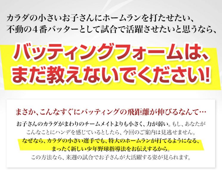 少年野球指導歴16年の榊原貴之氏が、やるだけでグングン上達できるDVD教材「縦振り式」練習ドリルを公開しています。