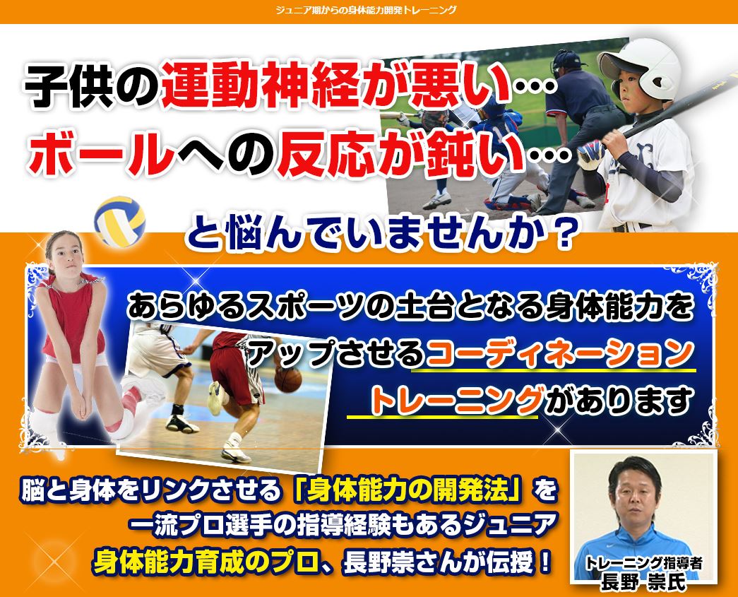 トレーニング指導者・長野崇氏がお伝えする「身体能力開発トレーニング」は、ジュニア選手のスポーツ指導を行っている顧問の先生や、チームで監督・コーチを務める指導者に向けた「運動神経」と「身体能力」を開発するためのトレーニング教材です。