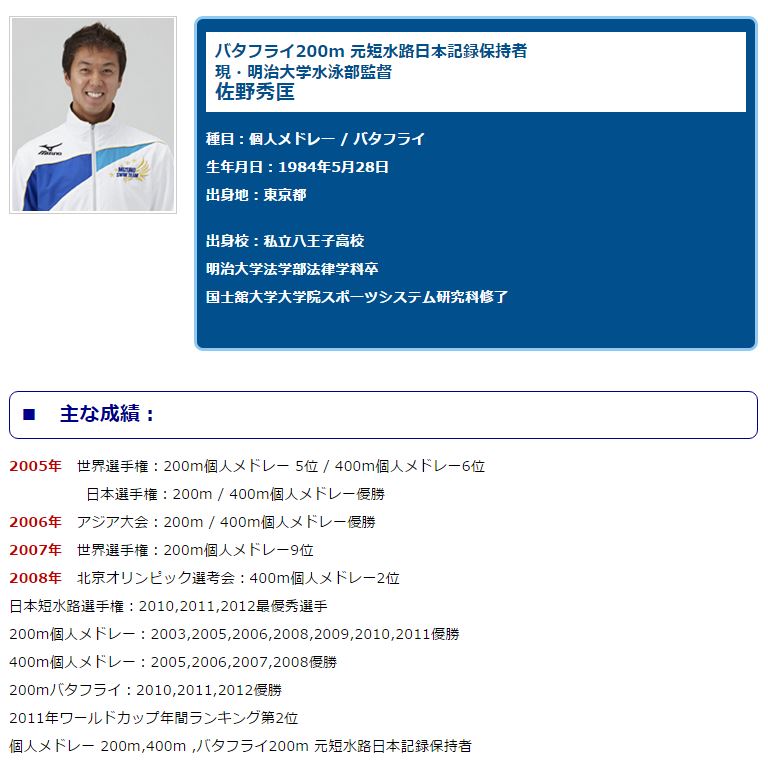 【明治大学水泳部監督、バタフライ200m元短水路日本記録保持者 佐野秀匡 監修】