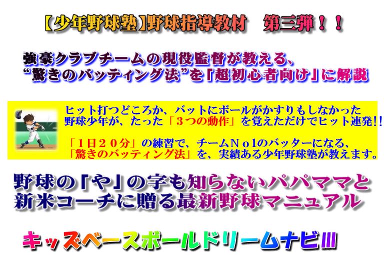 この上達法を手に入れて、お子様に正しいバッティングを教えてあげてください。