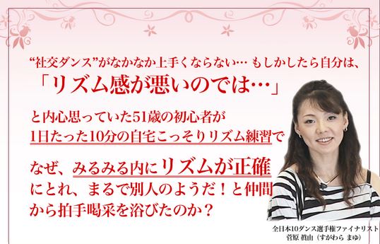 ですが、このような悩みは「社交ダンスのリズム練習法」をご覧いただくことで解消することができるのです。