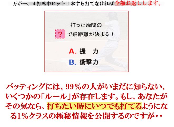 「バッティング大辞典」では、あなたに次のことをお約束します。