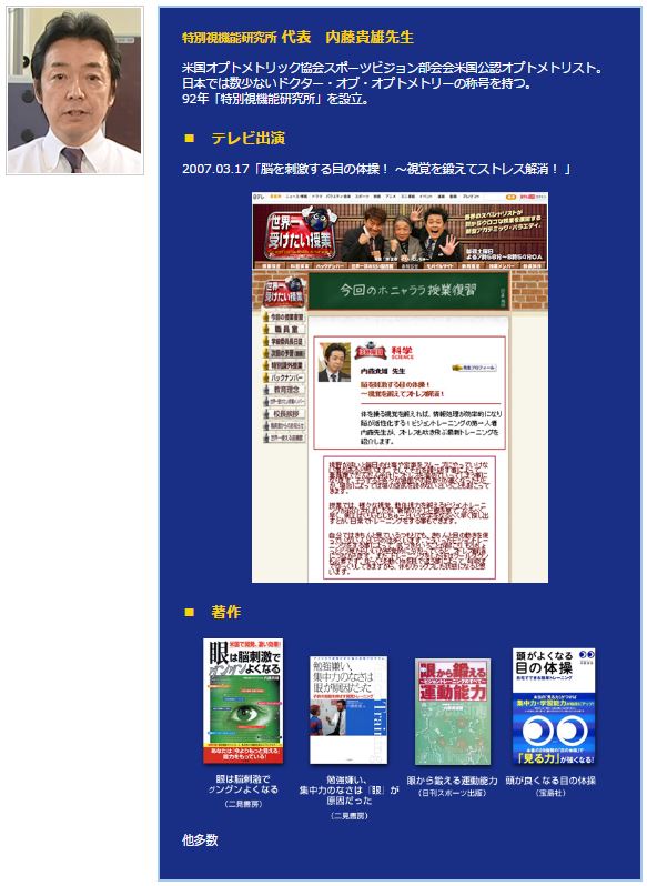 内藤貴雄先生は、ボクシングの元世界チャンピオンを始め、多くのトップアスリートのビジョンケアに携わった、この道のエキスパートです。